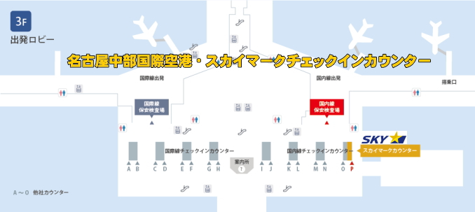 中部国際空港セントレア 第1ターミナル 3F Pカウンター (スカイマークチェックインカウンター )
